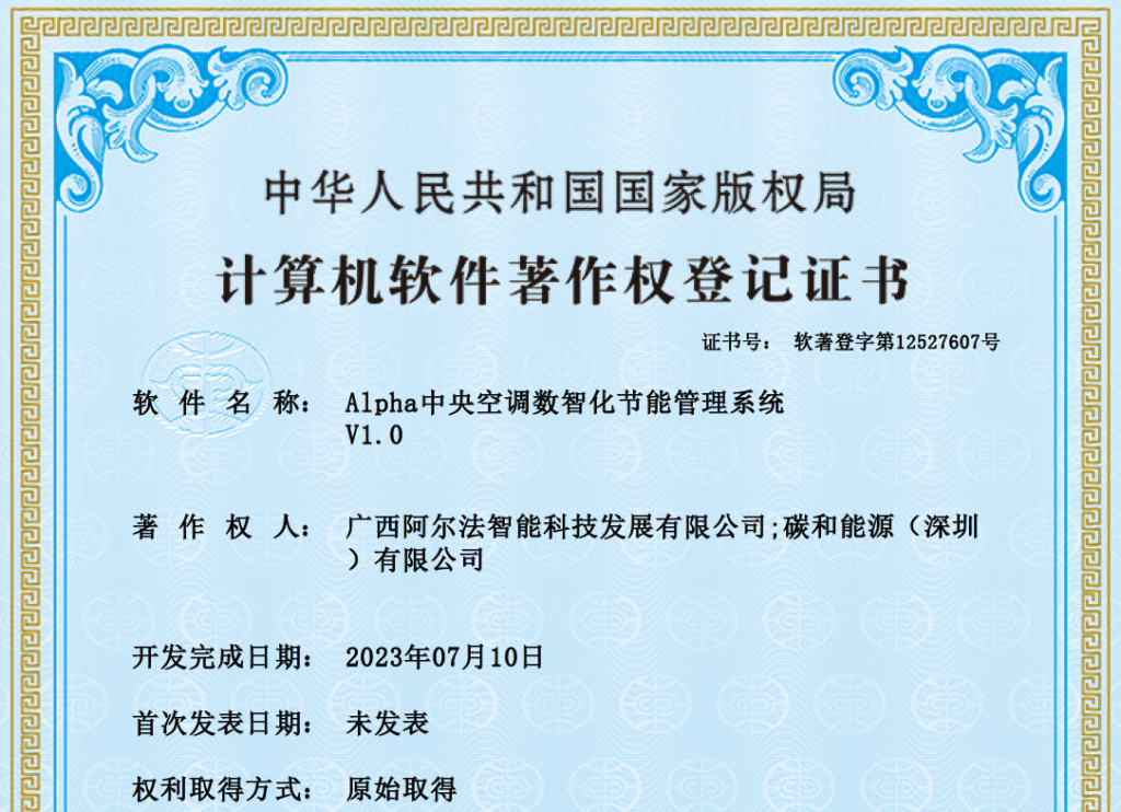 《Alpha中央空调数智化节能管理系统V1.0》- 软件著作权